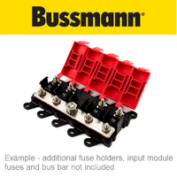 Images of a 1 input and 2 fuse modules with bus bar assembly