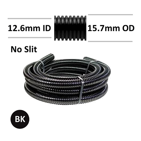 Corrugated Polypropylene Tube / Conduit - 13mm ID - No Slit - Black