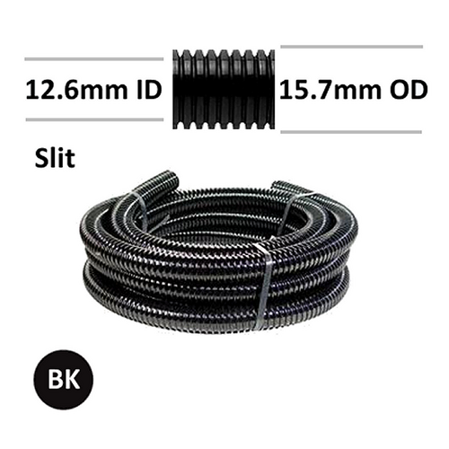 Corrugated Polypropylene Tube / Conduit - 13mm ID - Slit - Black